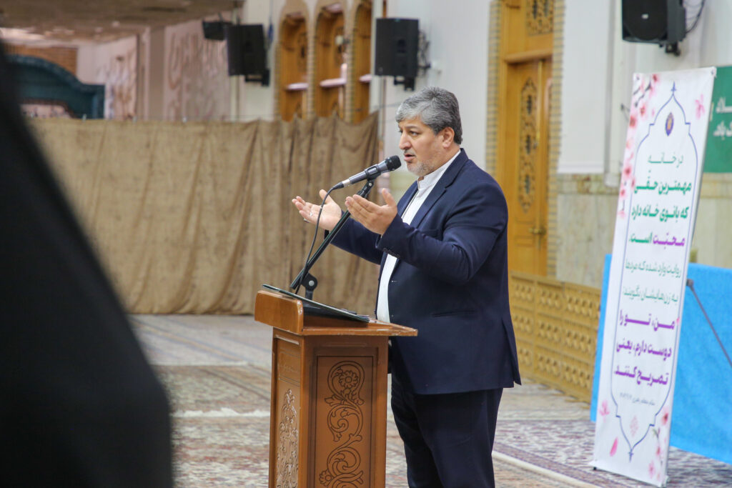 حجتالاسلام مؤمنی در سخنان خود با اشاره به حدیث شریف از حضرت زهرا(س) که فرمودند: «نحن وسیلته فی خلقه»، بیان کرد: اهلبیت(ع) واسطه فیض الهی و محل قدس الهیاند و این مقام، نتیجه عبور از سلسله امتحانات و رسیدن به مرتبه عبودیت است.