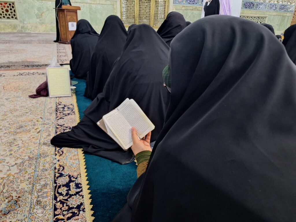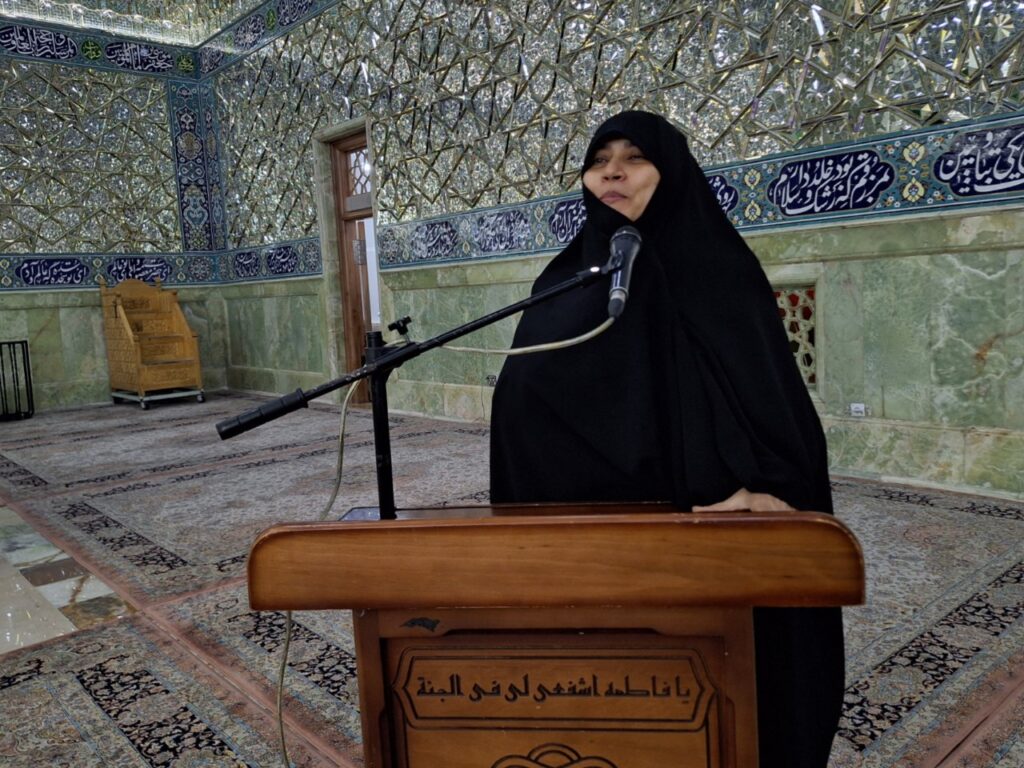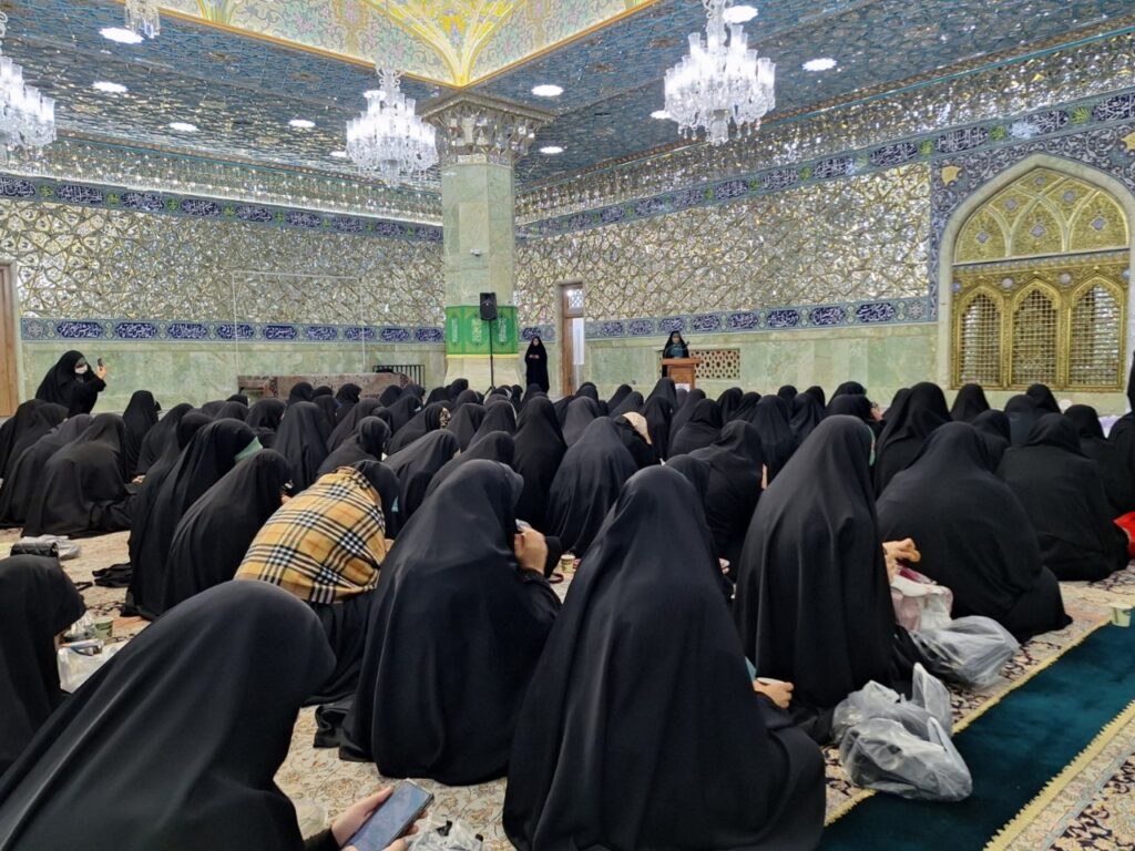 در ادامه، همخوانی سوره مبارکه کوثر بهصورت جمعی توسط مهمانان انجام شد و حاضران با عرض ارادت به ساحت مقدس حضرت فاطمه معصومه(سلاماللهعلیها)، فضای معنوی مراسم را رقم زدند.