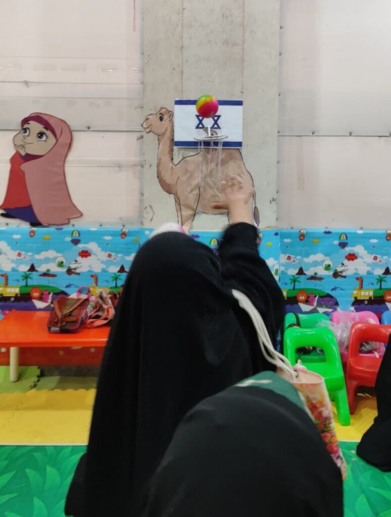 در غرفه سوم، کودکان در قالب یک بازی بسکتبال نمادین شرکت کردند؛ در این فعالیت آموزنده شرکتکنندگان با پرتاب توپها به سوی هدفی که نشانگرِ نمادینِ پرچم رژیم صهیونیستی بود، بهصورت نمادین انزجار خود را از ظلم و اشغالگری ابراز کردند و پیام همدلی با مظلومان را منتقل نمودند. این غرفه به یاد و احترام شهید تهرانیمقدم برگزار شد و در کنار جنبهٔ بازی و نشاط، آموزههای اخلاقی و هویتی مرتبط با مقاومت و ایثار نیز به نوجوانان منتقل شد.
