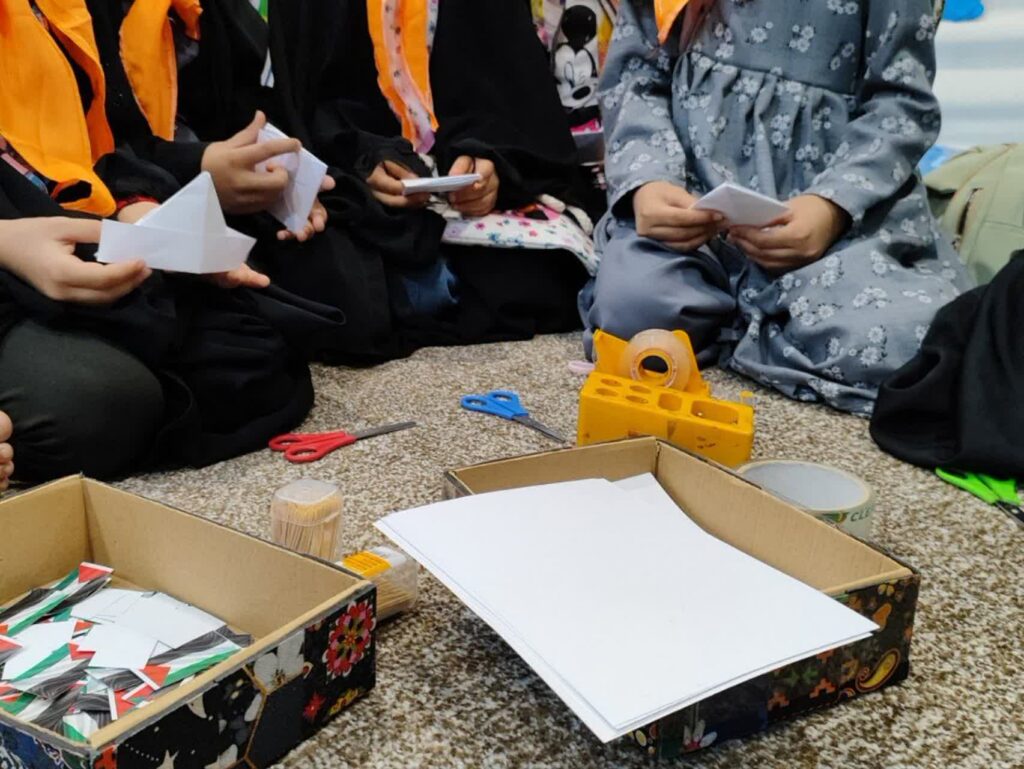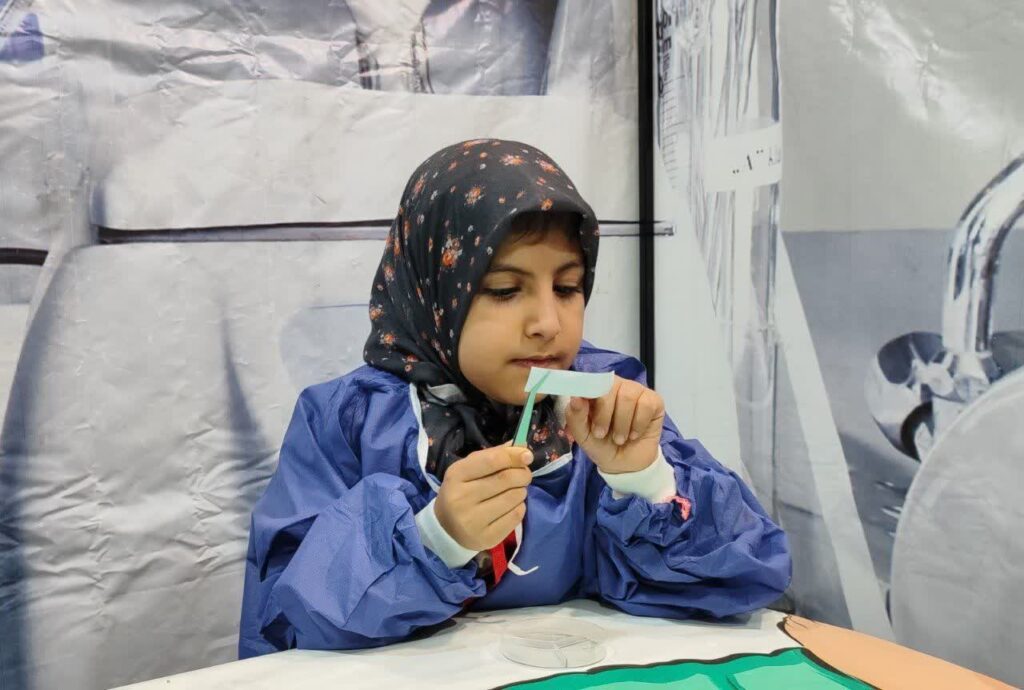 در دومین غرفه، دختران نوجوان با شور و اشتیاق در کارگاه «اوریگامی قایق» شرکت کردند. در این بخش، هر یک از شرکتکنندگان با دستان خود قایقهای کاغذی ساختند؛ اما این قایقها تنها یک سرگرمی ساده نبودند. آنها نمادی از «کشتی صُمود» بودند؛ کشتیای که پیام پایداری، استقامت و امید را در دل خود جای داده است.