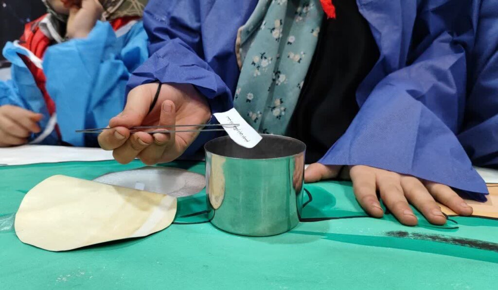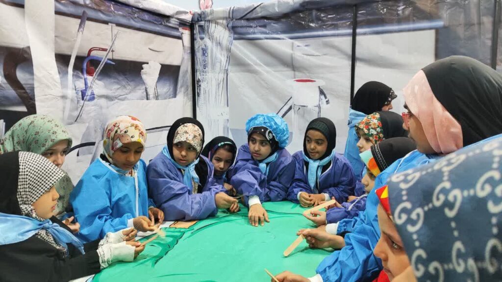 در نخستین غرفه از برنامه این هفته، کودکان وارد «آزمایشگاه صحرایی» شدند؛ جایی که تجربهای متفاوت و خلاقانه برای آنان رقم خورد. در این بخش، شرکتکنندگان با استفاده از ابزارهایی همچون پنس، بهصورت نمادین به شناسایی و جدا کردن «غدههای سرطانیِ گناه» از چشم، گوش، زبان و دست پرداختند و آنها را از بدن بیمار خارج کردند. این فعالیت، به زبان کودکانه، پیام روشنی از پالایش روح و دوری از گناه را به مخاطبان منتقل ساخت.
