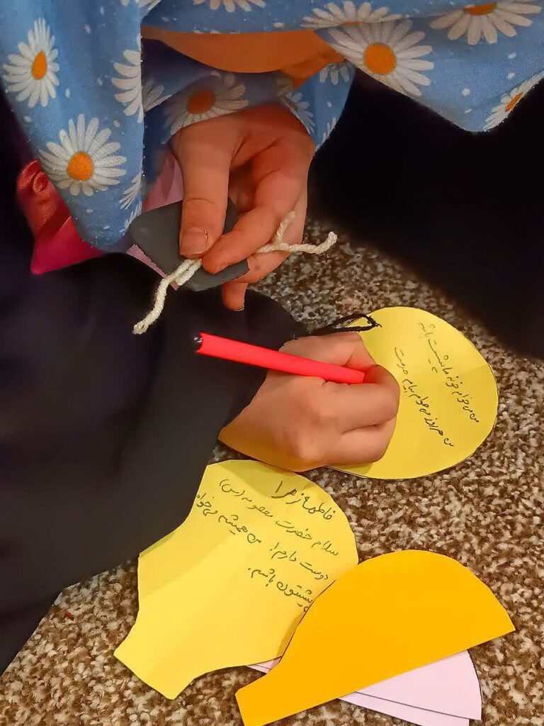 قصهگویی با موضوع امید، دعا و توکل، حلقه هنری ساخت بالن دعا و نوشتن آرزوها و الصاق آنها بر بنر جمعی، از دیگر بخشهای این برنامه بود که با مشارکت فعال کودکان همراه شد.