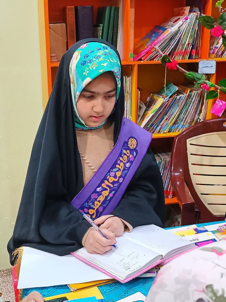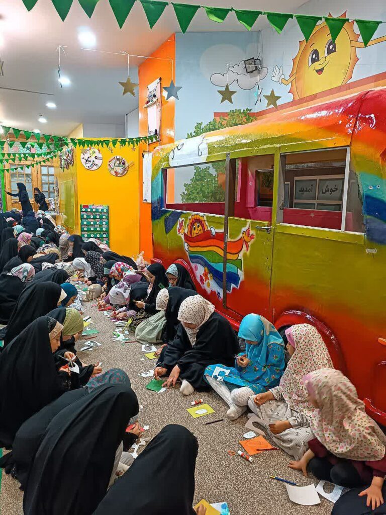 دختران حاضر در حلقه هنری مشغول ساخت نشانگر قرآن شدند و معرفی کتاب نیز صورت گرفت.